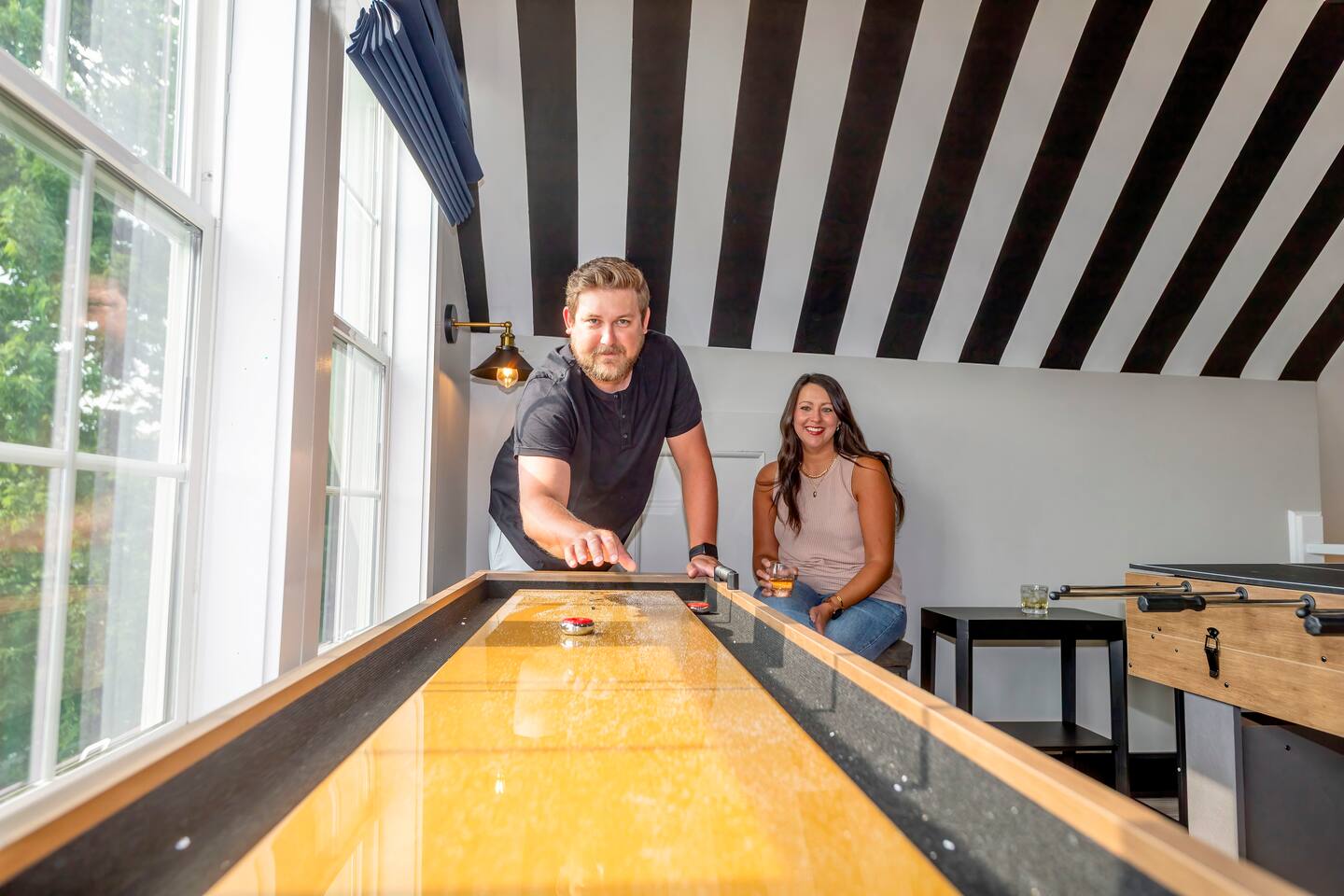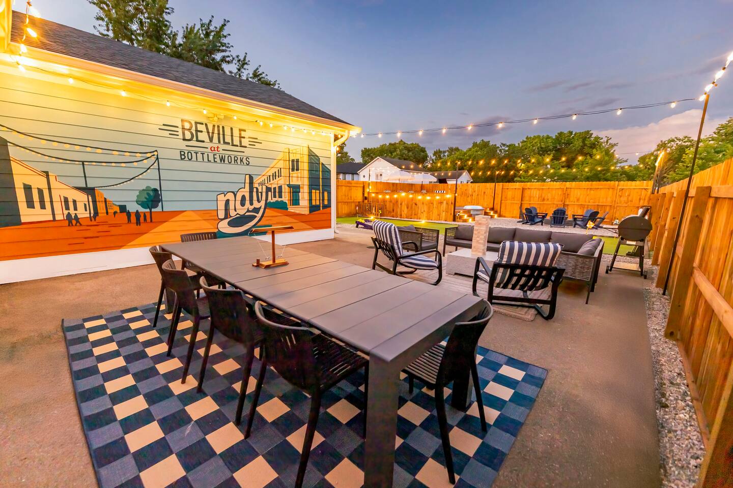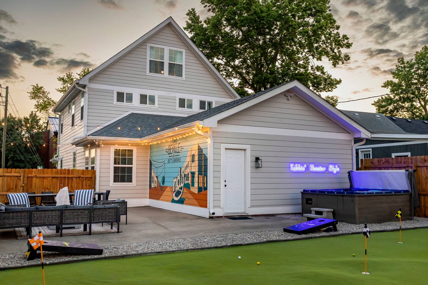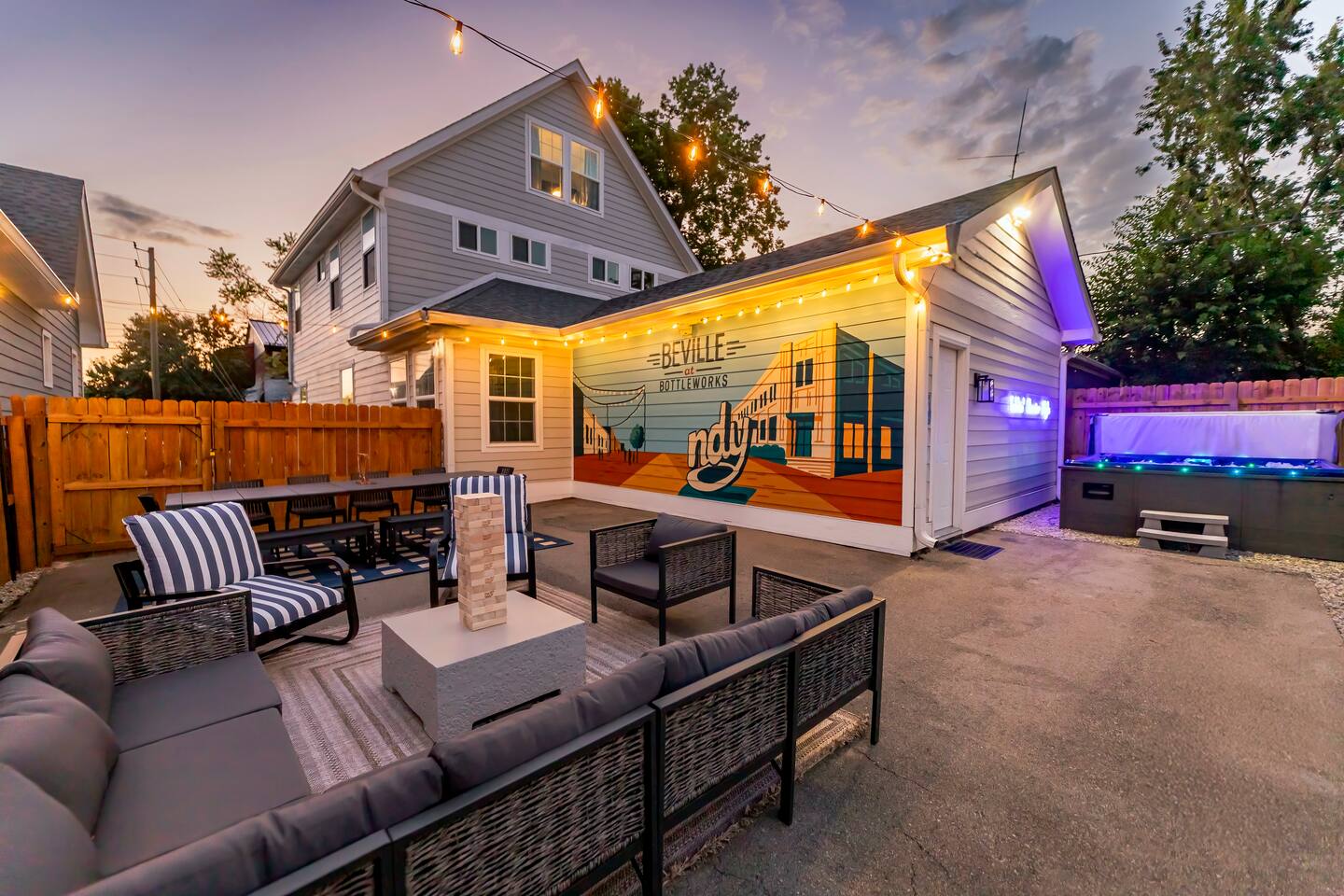 Welcome to Beville at Bottleworks! ๐ฝ๏ธ 4K movie theater w/ surround soundโperfect for movie nights โณ๏ธ Backyard putting green for fun ๐๐ฉณ Cowboy pool + sunny deck for lounging ๐ Jacuzzi to relax and unwind ๐ฅ๐ชต Fire pit for cozy nights under the stars ๐ Game zone: Foosball, ping pong, air hockey & shuffleboard ๐น๏ธ Arcade: Pac-Man & NBA Jam ๐ฟ Popcorn bar + โ๏ธ coffee bar ๐ 1 mi to Bottleworks โฒ๏ธ 10 min to Fountain Square ๐๏ธ 12 min to Lucas Oil Stadium ๐๏ธ 20 min to Indy Motor Speedway