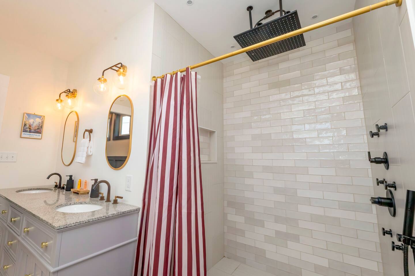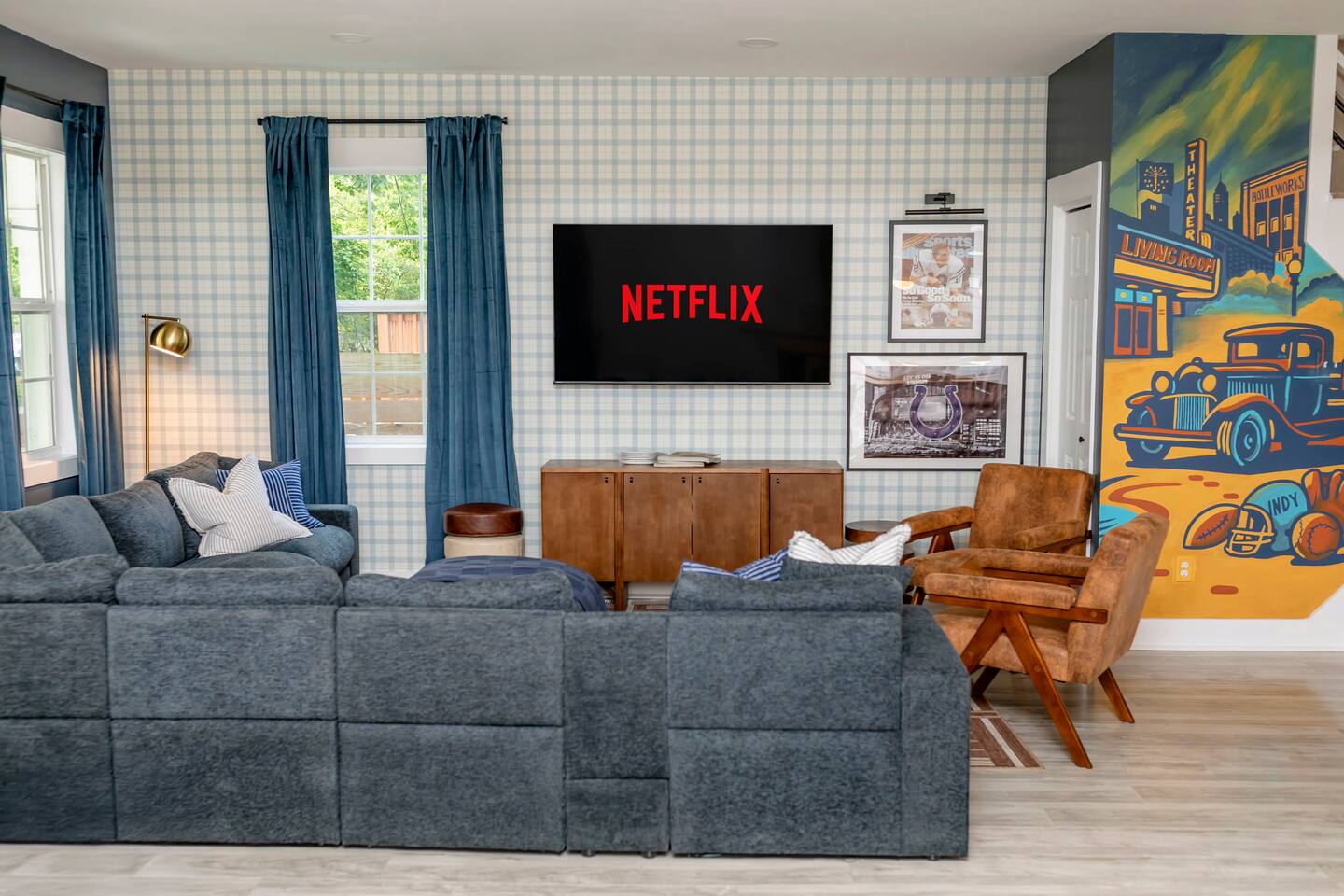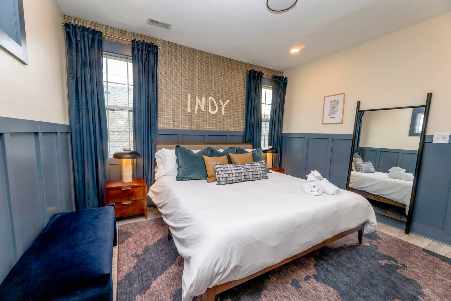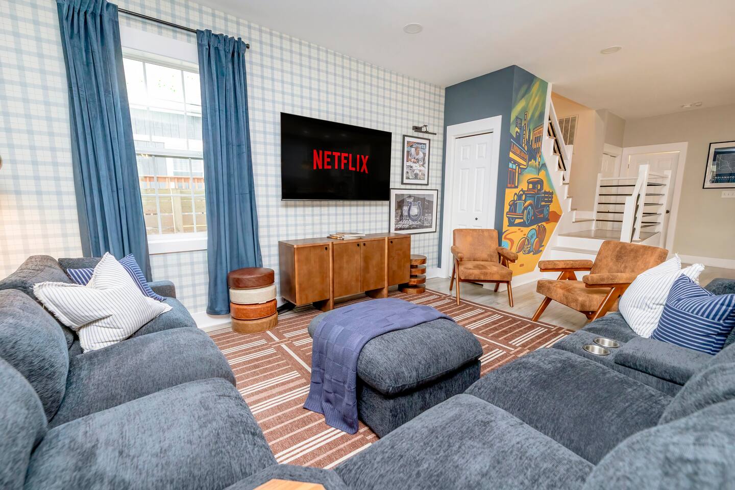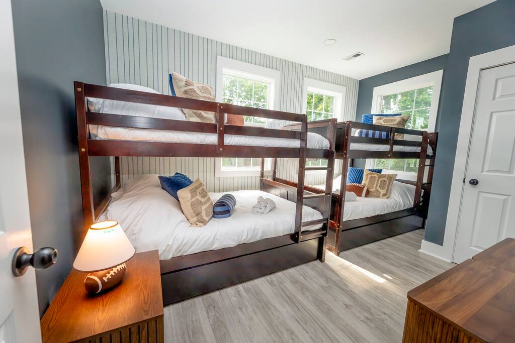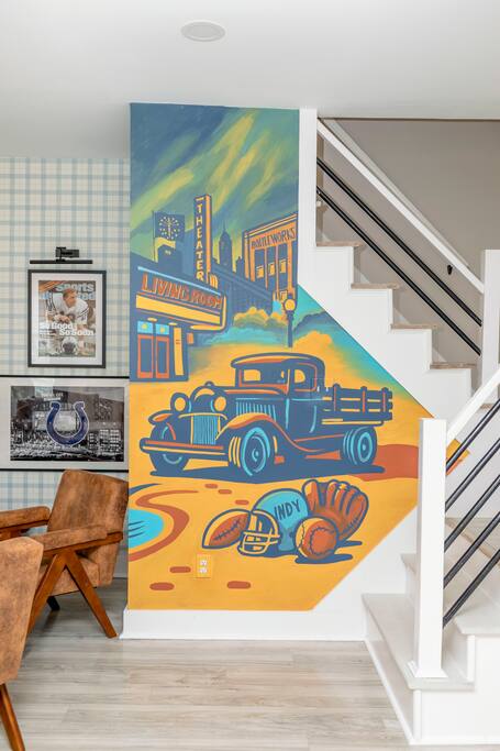 ๐๏ธ LIVING ROOM โ Large cozy sectional w/ built-in charging ports ๐ โ 65โ FireTV for epic movie nights ๐ฌ โ Family-friendly board games & kidsโ toys ๐ฒ๐งธ โ Stunning custom mural of the iconic Bottleworks District ๐จ ๐ฝ๏ธ DINING ROOM โ Spacious table with seating for 10 โ perfect for meals & game nights! ๐ฏ๏ธ๐ โ One-of-a-kind Indianapolis Colts design ๐๐ ๐ฉโ๐ณ KITCHEN โ Fully stocked with cookware, bakeware & all the essentials ๐ณ๐ฅ โ Coffee lovers rejoice: Coffee bar w/ Keurig & drip pot โ๏ธโค๏ธ โ Tons of pantry space for longer stays ๐งบ โ Kitchen basics provided: dish soap, pods, oil, salt, pepper, etc. ๐ง โ Bar seating for 4 โ perfect for breakfast or chatting with the chef ๐ณ๐ช ๐๏ธ BEDROOM ONE (Main Floor) โ Ideal for seniors or guests with mobility needs โฟ๏ธ โ Full-size bed with plush linens ๐ โ Work desk + stylish full body mirror ๐ช โ 50โ FireTV ๐บ ๐๏ธ BEDROOM TWO (Master Suite) โ King bed so comfy youโll never want to leave ๐ด๐ โ Walk-in closet + full-length mirror ๐๐ โ 50โ FireTV ๐บ ๐๏ธ BEDROOM THREE (Pacers Room) โ Queen bed w/ ultra-soft linens ๐ โ Spacious desk for remote work ๐ป โ Sleek wall-mounted mirror + 50โ FireTV ๐ช๐บ ๐๏ธ BEDROOM FOUR (Bunk Room) โ 2 bunk beds = 4 full-size mattresses = sleepover heaven! ๐๏ธ๐๏ธ โ 50โ FireTV for movie marathons ๐ฌ ๐๏ธ BEDROOM FIVE (3rd Floor Suite) โ Queen bed + chill seating area = total relaxation ๐งโโ๏ธ๐๏ธ โ 50โ FireTV for entertainment ๐บ ๐ค Bonus: Queen air mattress & linens available (find in main floor hallway closet) ๐ GAME ROOM โ Foosball, air hockey, ping pong & shuffleboard ๐ โ Retro arcade games: Pac-Man & NBA Jam ๐น๏ธ๐พ โ Wet bar for max hangout vibes ๐น ๐ฟ BATHROOMS Bathroom 1 (Main Floor): โ Easy-access w/ standing shower โ perfect for all guests ๐งผ Bathroom 2 (Master Ensuite): โ Spa-like experience with multi-head shower ๐ฟ๐โโ๏ธ โ Double sink vanity for stress-free mornings ๐ช๐ช Bathroom 3 (2nd Floor): โ Full tub/shower combo โ great for kids or relaxing soaks ๐ Bathroom 4 (3rd Floor Ensuite): โ Sleek standing shower & vanity ๐งโโ๏ธ All bathrooms stocked with fresh towels, shampoo, conditioner, and body wash ๐งด๐ ๐ฌ MOVIE THEATER โ Your own private cinema! ๐ฟ โ 135โ screen + 4K Epson projector ๐ฅ โ Premium KEF 5.1 surround sound ๐ โ Plush recliners for 11 + bean bags ๐๏ธ โ Classic popcorn machine with flavor bar ๐ฟโจ ๐ณ BACKYARD OASIS โ Mini golf green w/ putters & balls โณ๏ธ โ Cowboy pool & sun deck โ perfect for summer days โ๏ธ๐ฉฑ (open from Memorial Day - Labor Day) โ Huge hot tub with jets for ultimate relaxation ๐ โ Fire pit for cozy nights ๐ฅ โ Outdoor dining & seating area ๐๐ช โ Yard games: Giant Jenga, corn hole ๐ฝ, life-size Connect 4 ๐ฏ โ Charcoal grill for BBQ lovers โจ๏ธ ๐ PARKING โ Driveway fits up to 4 vehicles โ Street parking available (first-come, first-serve) ๐๐ ฟ๏ธ