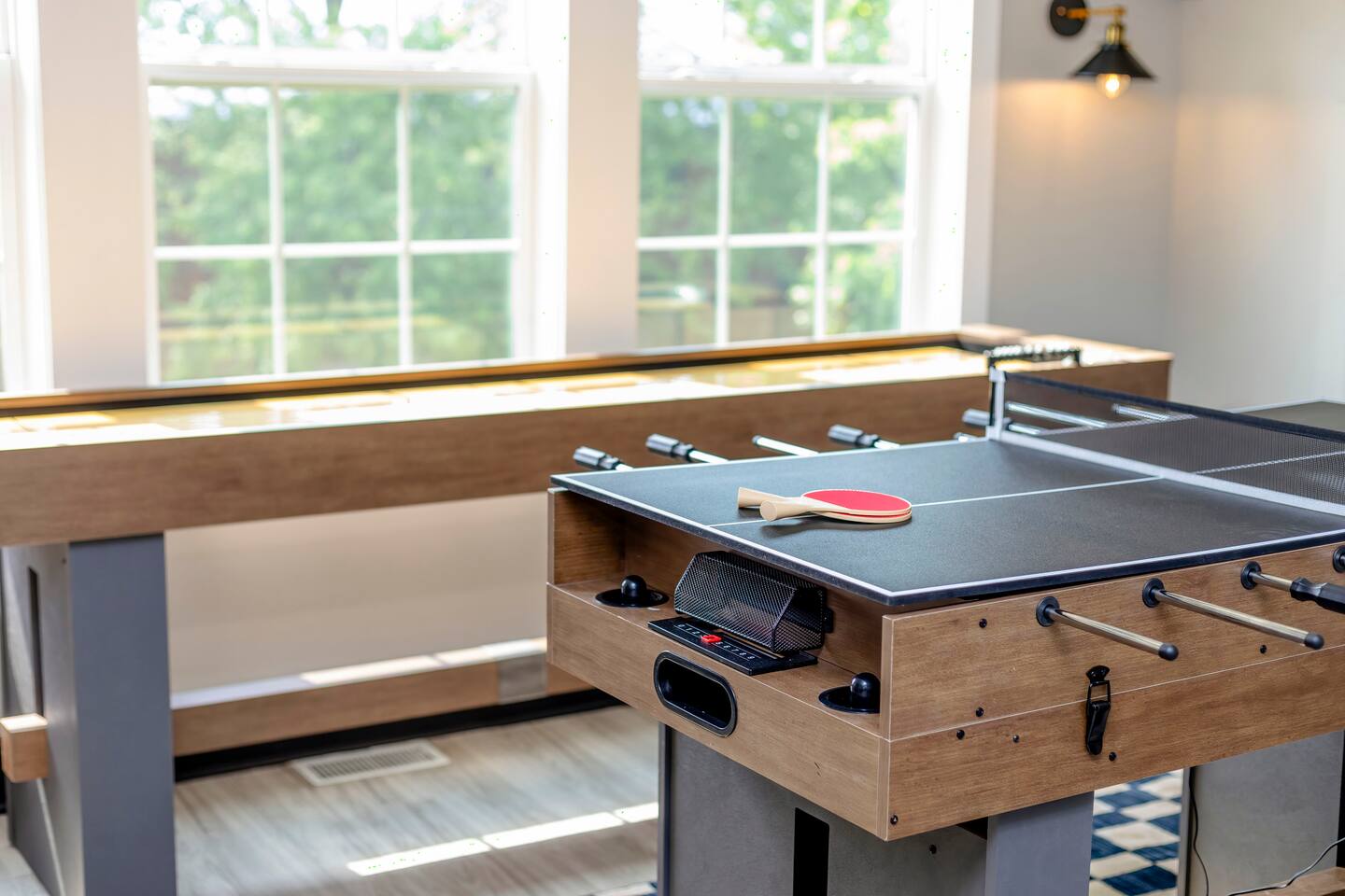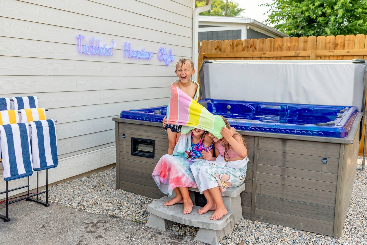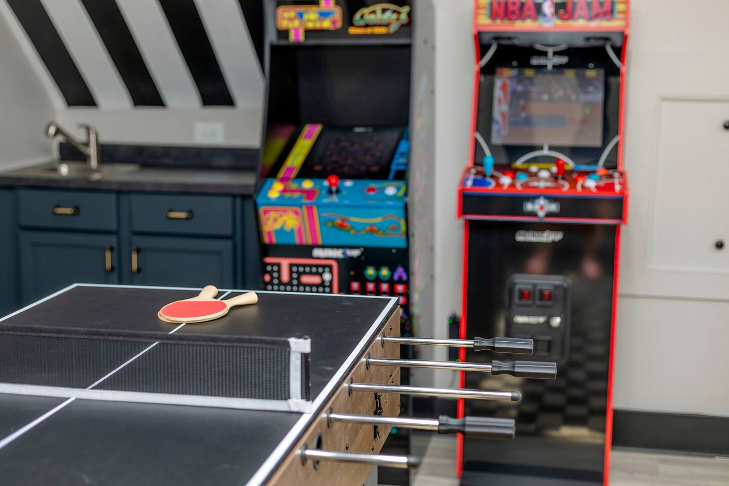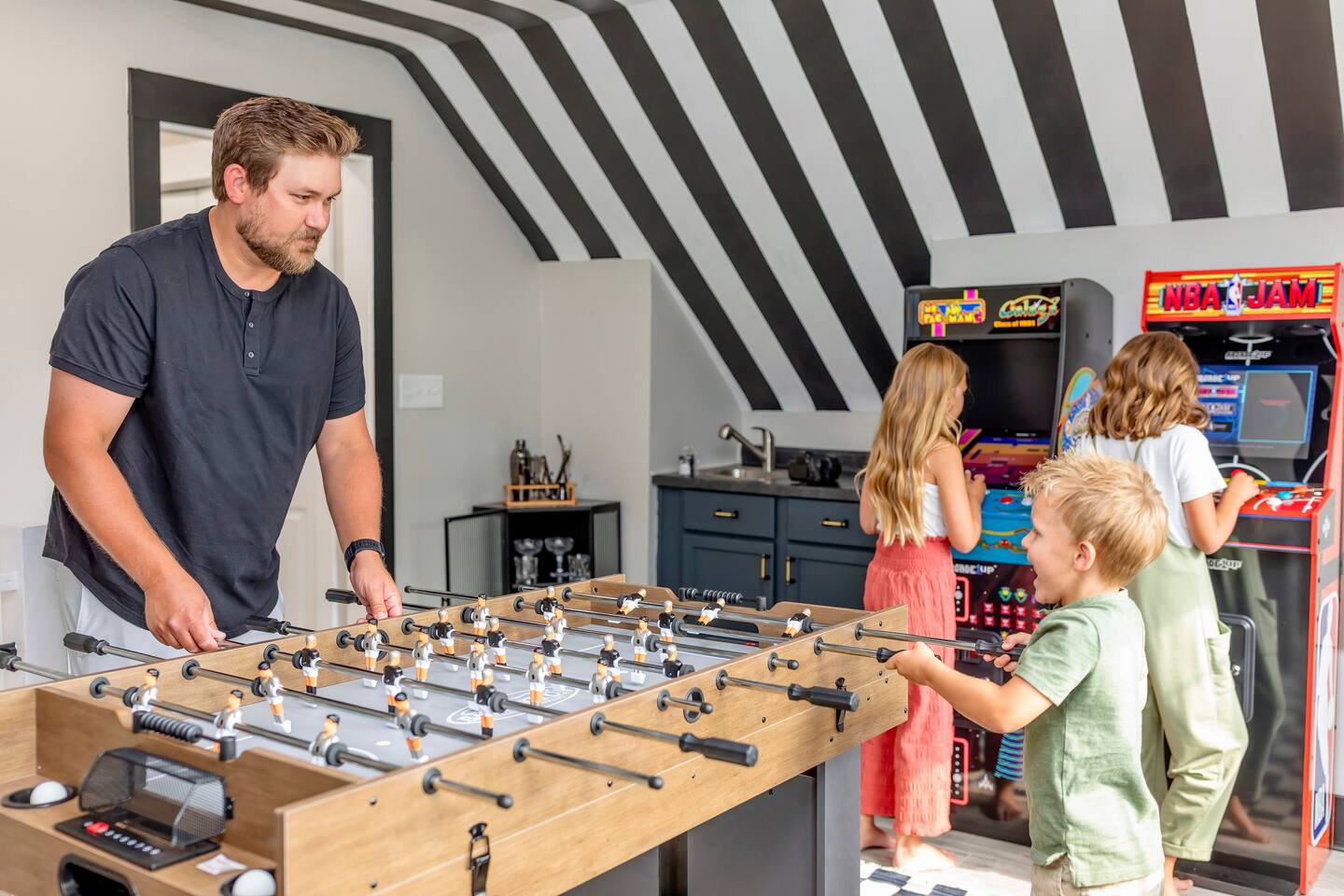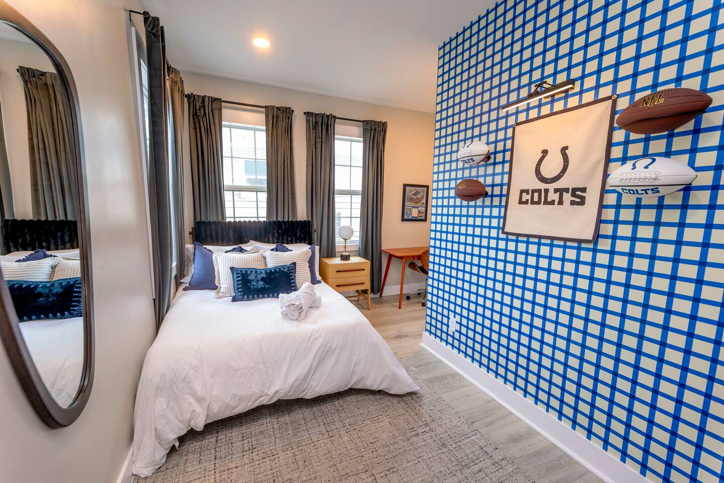 ๐๏ธ LIVING ROOM โ Large cozy sectional w/ built-in charging ports ๐ โ 65โ FireTV for epic movie nights ๐ฌ โ Family-friendly board games & kidsโ toys ๐ฒ๐งธ โ Stunning custom mural of the iconic Bottleworks District ๐จ ๐ฝ๏ธ DINING ROOM โ Spacious table with seating for 10 โ perfect for meals & game nights! ๐ฏ๏ธ๐ โ One-of-a-kind Indianapolis Colts design ๐๐ ๐ฉโ๐ณ KITCHEN โ Fully stocked with cookware, bakeware & all the essentials ๐ณ๐ฅ โ Coffee lovers rejoice: Coffee bar w/ Keurig & drip pot โ๏ธโค๏ธ โ Tons of pantry space for longer stays ๐งบ โ Kitchen basics provided: dish soap, pods, oil, salt, pepper, etc. ๐ง โ Bar seating for 4 โ perfect for breakfast or chatting with the chef ๐ณ๐ช ๐๏ธ BEDROOM ONE (Main Floor) โ Ideal for seniors or guests with mobility needs โฟ๏ธ โ Full-size bed with plush linens ๐ โ Work desk + stylish full body mirror ๐ช โ 50โ FireTV ๐บ ๐๏ธ BEDROOM TWO (Master Suite) โ King bed so comfy youโll never want to leave ๐ด๐ โ Walk-in closet + full-length mirror ๐๐ โ 50โ FireTV ๐บ ๐๏ธ BEDROOM THREE (Pacers Room) โ Queen bed w/ ultra-soft linens ๐ โ Spacious desk for remote work ๐ป โ Sleek wall-mounted mirror + 50โ FireTV ๐ช๐บ ๐๏ธ BEDROOM FOUR (Bunk Room) โ 2 bunk beds = 4 full-size mattresses = sleepover heaven! ๐๏ธ๐๏ธ โ 50โ FireTV for movie marathons ๐ฌ ๐๏ธ BEDROOM FIVE (3rd Floor Suite) โ Queen bed + chill seating area = total relaxation ๐งโโ๏ธ๐๏ธ โ 50โ FireTV for entertainment ๐บ ๐ค Bonus: Queen air mattress & linens available (find in main floor hallway closet) ๐ GAME ROOM โ Foosball, air hockey, ping pong & shuffleboard ๐ โ Retro arcade games: Pac-Man & NBA Jam ๐น๏ธ๐พ โ Wet bar for max hangout vibes ๐น ๐ฟ BATHROOMS Bathroom 1 (Main Floor): โ Easy-access w/ standing shower โ perfect for all guests ๐งผ Bathroom 2 (Master Ensuite): โ Spa-like experience with multi-head shower ๐ฟ๐โโ๏ธ โ Double sink vanity for stress-free mornings ๐ช๐ช Bathroom 3 (2nd Floor): โ Full tub/shower combo โ great for kids or relaxing soaks ๐ Bathroom 4 (3rd Floor Ensuite): โ Sleek standing shower & vanity ๐งโโ๏ธ All bathrooms stocked with fresh towels, shampoo, conditioner, and body wash ๐งด๐ ๐ฌ MOVIE THEATER โ Your own private cinema! ๐ฟ โ 135โ screen + 4K Epson projector ๐ฅ โ Premium KEF 5.1 surround sound ๐ โ Plush recliners for 11 + bean bags ๐๏ธ โ Classic popcorn machine with flavor bar ๐ฟโจ ๐ณ BACKYARD OASIS โ Mini golf green w/ putters & balls โณ๏ธ โ Cowboy pool & sun deck โ perfect for summer days โ๏ธ๐ฉฑ (open from Memorial Day - Labor Day) โ Huge hot tub with jets for ultimate relaxation ๐ โ Fire pit for cozy nights ๐ฅ โ Outdoor dining & seating area ๐๐ช โ Yard games: Giant Jenga, corn hole ๐ฝ, life-size Connect 4 ๐ฏ โ Charcoal grill for BBQ lovers โจ๏ธ ๐ PARKING โ Driveway fits up to 4 vehicles โ Street parking available (first-come, first-serve) ๐๐ ฟ๏ธ