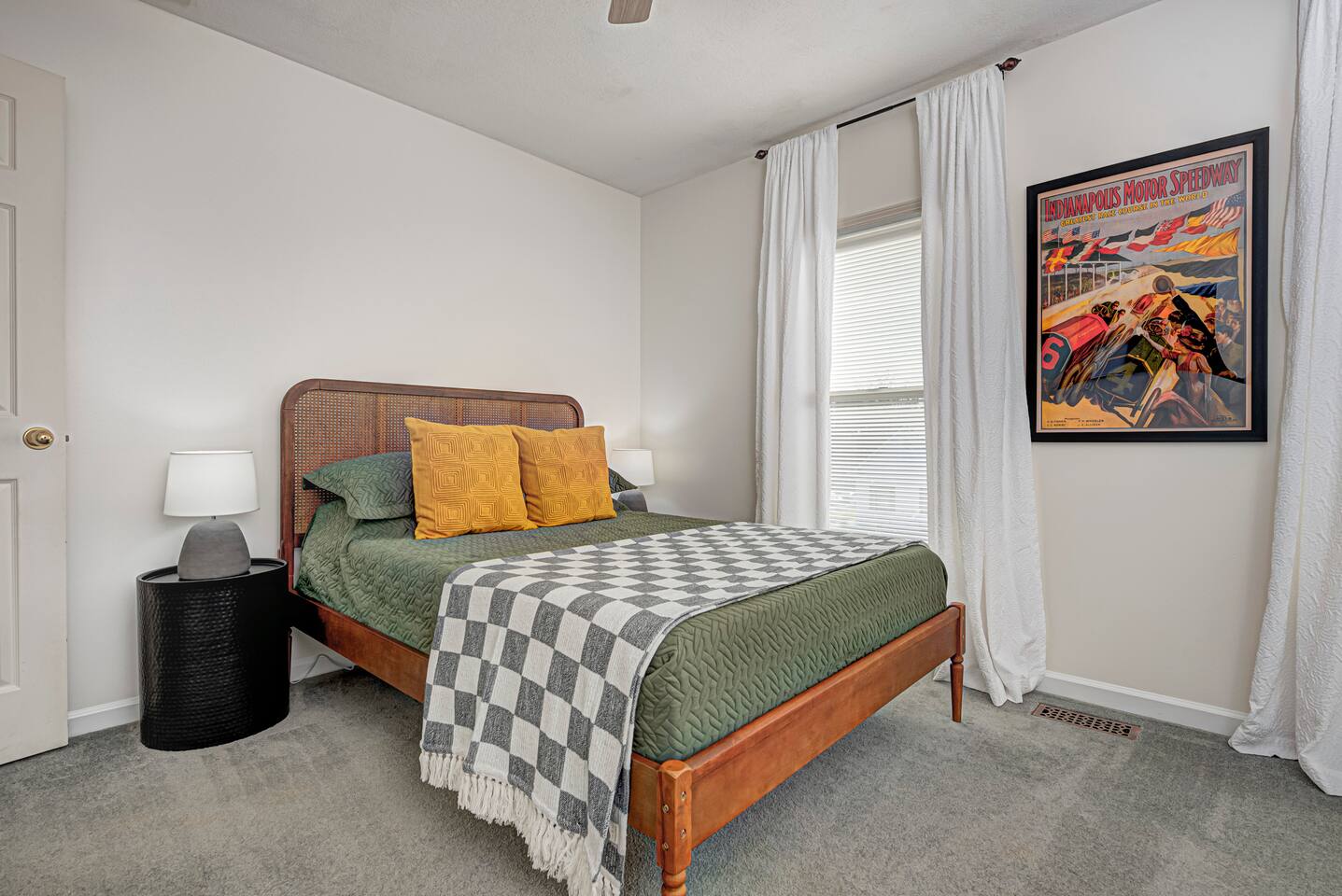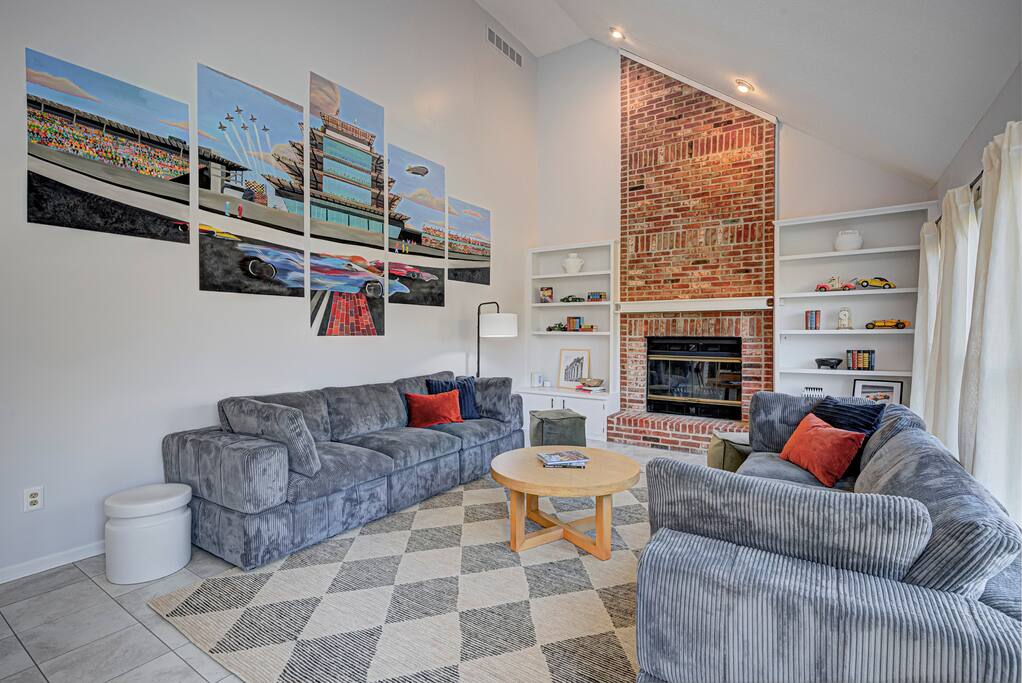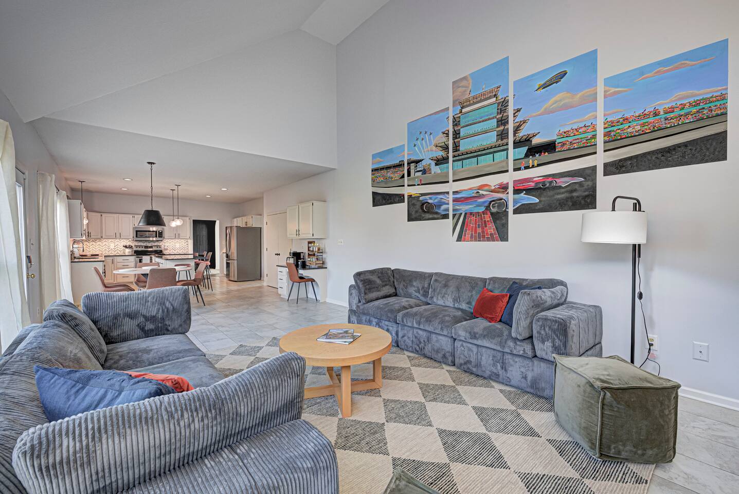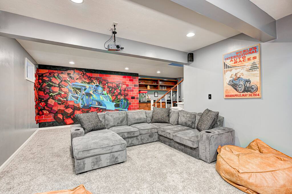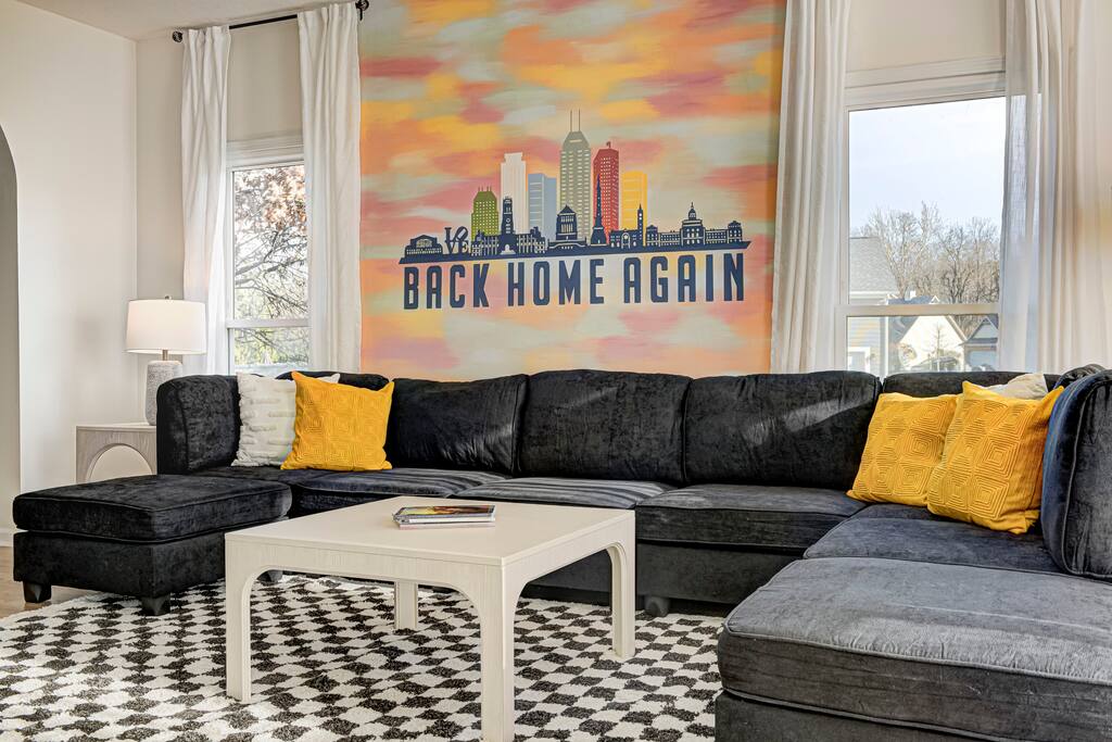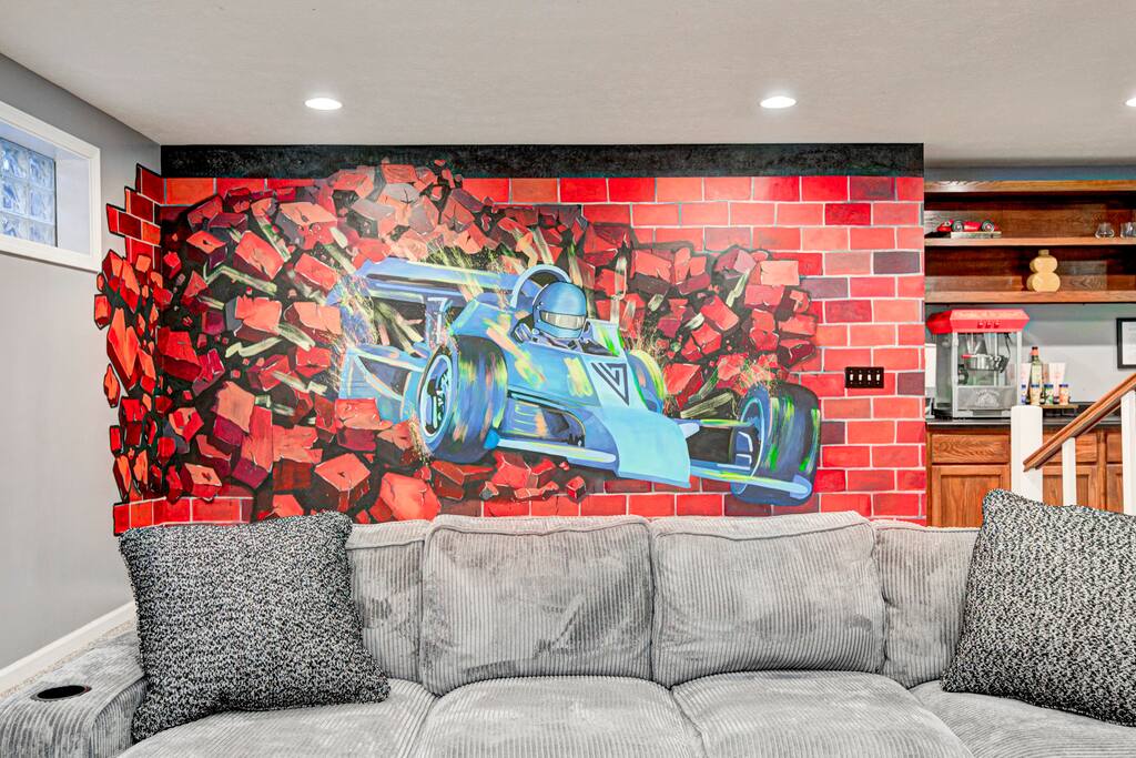 FRONT LIVING ROOM: -Spacious sitting area -”Back Home Again” custom mural with Indianapolis cityscape -70in Roku TV -Indy 500 Memorabilia throughout -Beautiful natural lighting DINING ROOM: -Spacious dining area that can be a multi purpose space with two tables and extra chairs available -Beautiful accent wall and race themed artwork KITCHEN: -Fully stocked kitchen with cookware and bakeware -Plenty of pantry space for longer stays -Fully stocked coffee bar for guests to enjoy; includes coffee pot & Keurig -Kitchen essentials provided - dish soap, dishwasher pods, sponges, trash bags, cooking oil, salt, pepper SECOND LIVING ROOM: -Comfortable sofas to enjoy while playing games -Pagoda at Indianapolis Motor Speedway custom mural -Spacious, cozy, and plenty of natural lighting -Beautiful view of the spacious backyard OFFICE: -Transitional space that’s perfect for getting ready, working, or lounging -Queen sleeper sofa; linens available in laundry room closet -Checkered wall accent with stylish velvet chairs BEDROOM ONE: -Full size, super comfortable bed -Cozy linens -70 in Roku TV BEDROOM TWO: -Three twin size, super comfortable beds -Awesome space for kids with activity table and toys -Fun race theme throughout BEDROOM THREE: -Spacious with king size, comfortable bed with ultra-soft linens -Huge walk in closet -En suite bathroom with jacuzzi tub and walk in shower -70in Roku TV BEDROOM FOUR: -Comfortable king bed -VIbrant, elegant decor -Spacious closet -Full length mirror -70in Roku TV BEDROOM FIVE: -Comfortable king bed -Timeless, historic decor featuring Indianapolis Motor Speedway -Spacious closet -Full length mirror -70in Roku TV BASEMENT: -This basement is a VIBE -Custom race car mural crossing the line of bricks -Pool table and projector screen so that you can play and watch your favorites -Surround sound -Popcorn bar complete with popcorn machine -Milkshake bar with toppings for guests -Hightop tables perfect for enjoying a drink together or playing cards -Arcade room with three different consoles and a 70in Roku TV BATHROOM ONE: -En suite in the primary bedroom on the second floor -Jacuzzi tub and walk in shower -Spacious vanities -Towels available -Shampoo, soap, lotion, and conditioner included BATHROOM TWO -Full bathroom on the second floor -Shower/tub combo -Spacious double sink vanity -Towels available -Shampoo, soap, lotion, and conditioner included BATHROOM THREE -Full bathroom in the basement -Shower/tub combo -Spacious double sink vanity -Towels available -Shampoo, soap, lotion, and conditioner included HALF BATH -Half bath located on main level of home off the kitchen GARAGE/PARKING: -Two car garage that guests will have access to and driveway that fits 4 normal sized vehicles. (No overnight street parking) *No buses, RVs, trailers, or similar vehicles allowed on property. Any branded vehicles must be covered up.* *We also have a queen air mattress for guests to use when needed. Linens can be located in the laundry room closet.