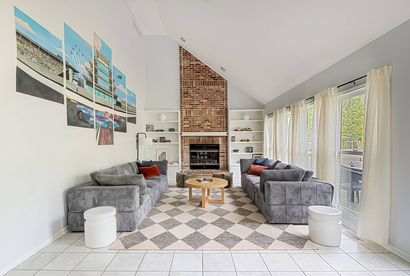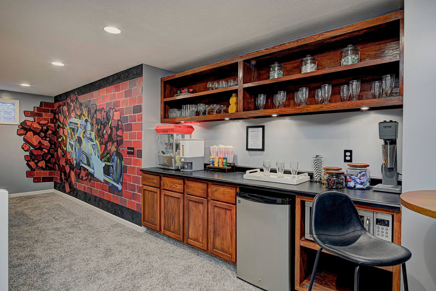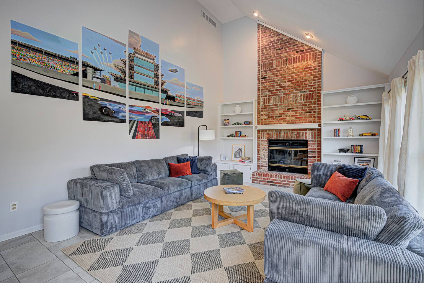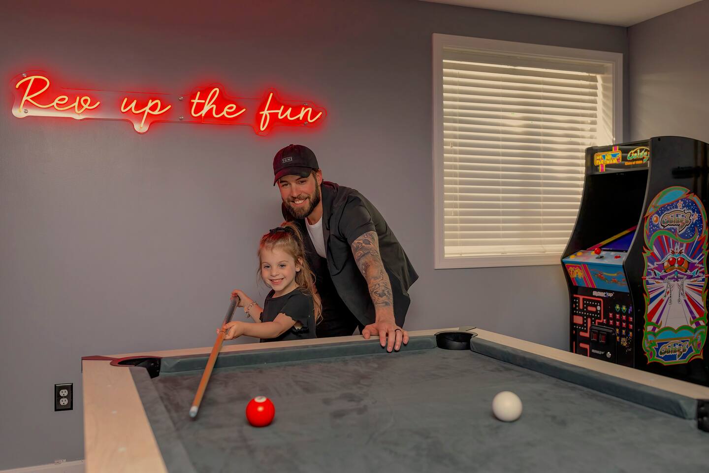 Welcome to Victory Lane! Amenities: 🎮 Game room w/ NFL Blitz, Pac-Man & Pinball 🎱 Pool table for friendly competition 🎬 Private movie room w/ surround sound 🥤🍿 Milkshake & popcorn bar—fun for all ages ☕️ Coffee bar fully stocked for your morning fix 🍽️ Backyard deck w/ outdoor dining & chill vibes 🎨 Custom murals that wow every guest 📺 Spacious living room w/ oversized TV Location: 📍 25 min to downtown Indy 🏁 30 min to the Motor Speedway 📘 Guidebook w/ our top local picks included!